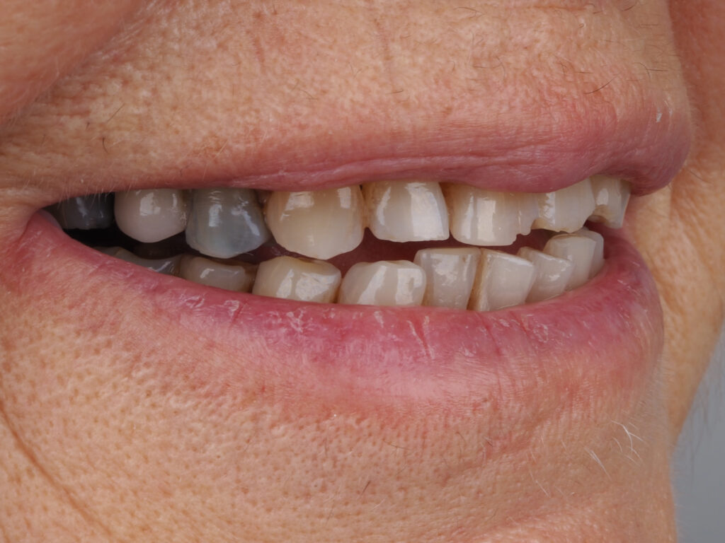 Como se observa en las imagen del «antes», el paciente presentaba una situación que afectaba tanto a la estética como a la salud de su boca.